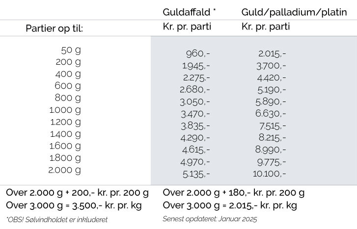 Består dit affald af et væsentligt indhold af platin og/eller palladium kan det i mange tilfælde betale sig at behandle metalaffaldet for denne proces, da det således kan dække samtlige omkostninger. Men du skal være sikker på indholdet, da det jo er en fordyrende proces i forhold til en almindelig guld- og sølvaffinering.